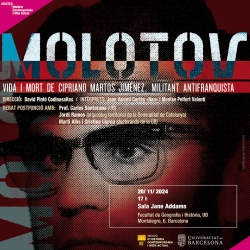 18/11/2024El pròxim 20 de novembre, a la Sala Jane Adams de la Facultat de Geografia i Història, s'estrenarà l'obra teatral «Molotov, cas Cipriano Martos».Arxivat a: Blog, General