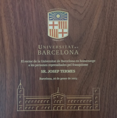 Cal congratular-se que el rector de la nostra universitat, el Dr. Joan Guàrdia, hagi promogut la celebració d'aquest homenatge tan merescut a les persones que van ser víctimes de la repressió franquista, per bé que arribi tard, perquè l'Espanya constitucional es va fonamentar en la desmemòria i l'oblit. Per això la majoria de les personalitats homenatjades ja són mortes: a més del professor Termes, també han estat reconeguts Ramon Aramon, Guillem Díaz Plaja, Alexandre Galí, Jordi Maragall, Santiago Pi i Sunyer, Ferran Soldevila, Carles Riba, Joaquim i Josep Ramon Xirau, Antoni i Joaquim Trias, Josep Fontana, Ernest Lluch, Jordi Solé i Tura, Manuel Vázquez Montalbán o Josep M. Valverde.
