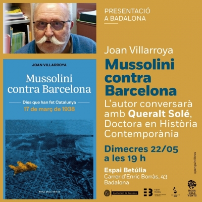 Els dies 16, 17 i 18 de març de 1938 l’aviació italiana va bombardejar Barcelona amb el resultat de més d’un miler de morts i la destrucció total de 48 edificis. És considerat el primer bombardeig de saturació de la història i el segon que més morts va causar en la guerra civil espanyola en una sola de les incursions després del de Guernica. El bombardeig fou ordenat pel dictador italià Benito Mussolini, i es fa fer des de les tres bases aèries que Itàlia tenia a Mallorca (Comando Aviazione Legionaria delle Baleari), des d'on ja havia efectuat altres bombardejos sobre la costa mediterrània espanyola. El professor Villarroya que és el gran especialista en aquesta qüestió, ha escrit un llibre amè per a tots els públics. El dimecres 22 de maig, a les 19 h, la Dra. Queralt Solé presentarà el llibre, conjuntament amb l'autor, a l'Espai Betúlia de Badalona.