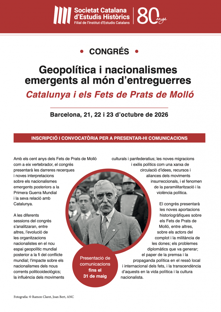 Amb els cent anys dels Fets de Prats de Molló com a eix vertebrador, la Societat Catalana d'Estudis Històrics, filial de l'Institut d'Estudis Catalans, convoca un Congrés d'història.